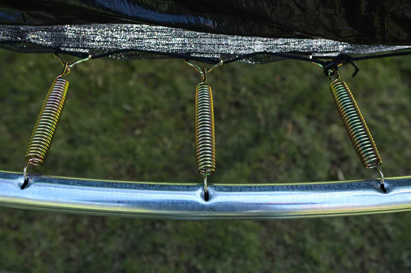 Springs 36 Galvanised and Zinc plated 120mm High Tension springs. This is the optimum number of springs required to give the maximum bounce for the lighter than average user weight (under 10 stone) but will still perform well all the way up to the maximum user weight.