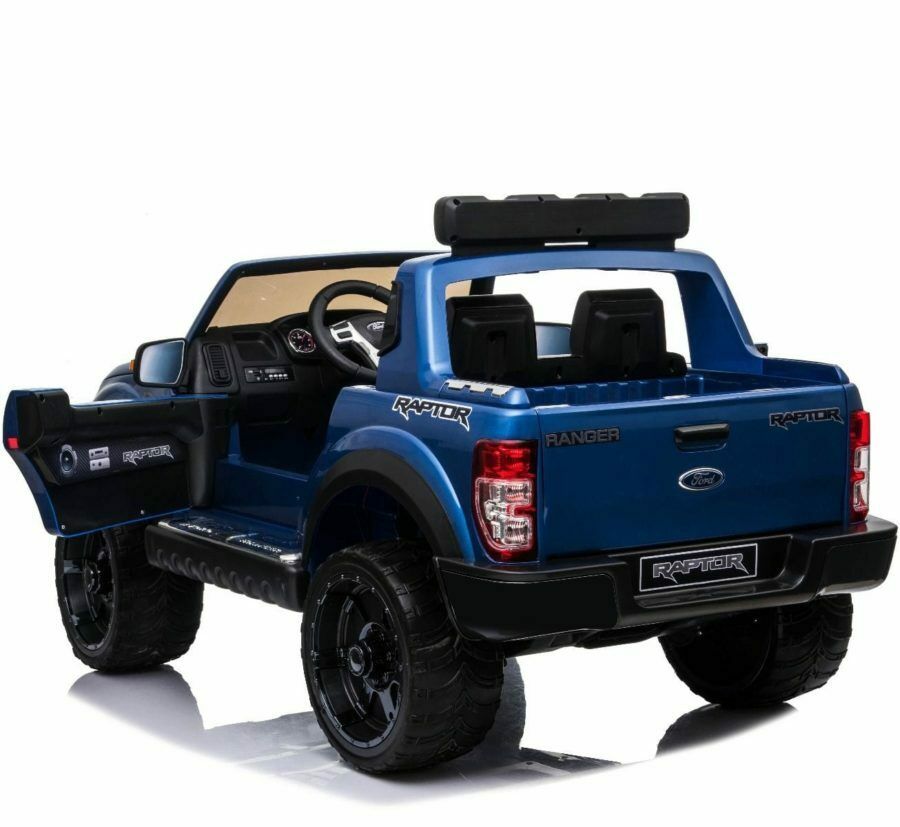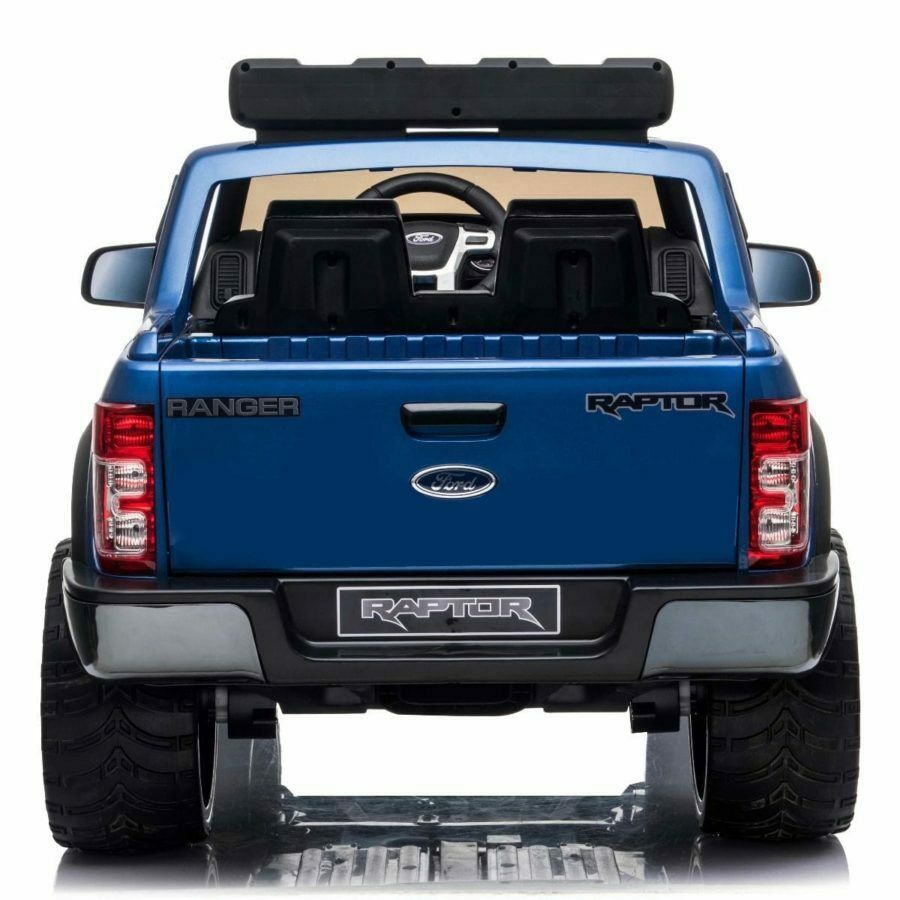 The Licensed Ford Ranger Raptor is packed with features including, gloss paint, EVA tyres, Leather seat, opening doors, tail gate and bonnet, remote control, MP3 input, USB input, SD card input, Radio, suspension, lights, 3 position key start, engine sounds, horn, battery indicator, illuminated dashboard, forward and reverse gears, high and low speed settings and volume control.
