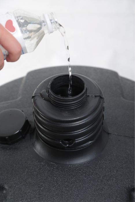 The large base is supplied empty for easy transport, simply fill with water or even sand if you require an even heavier more stable base.