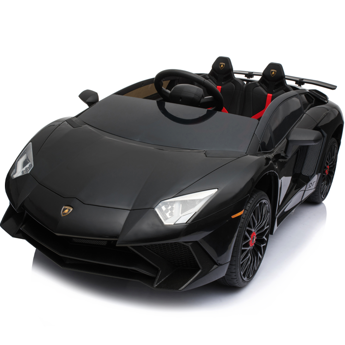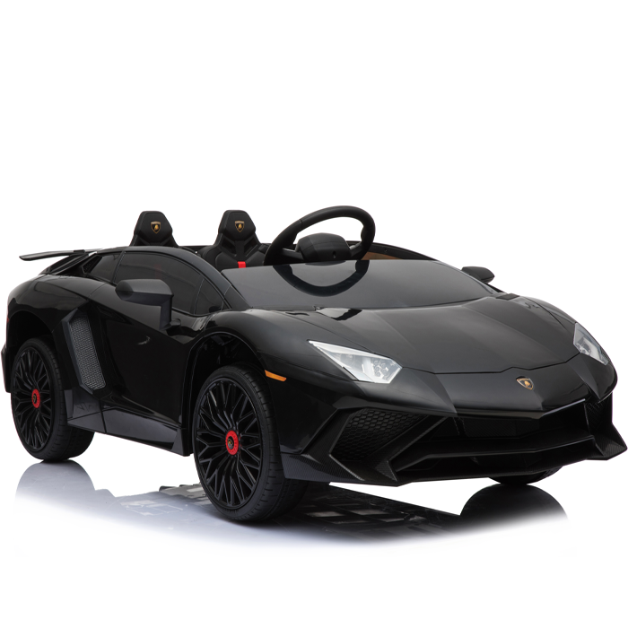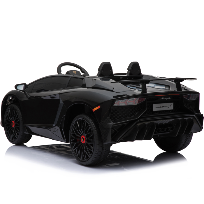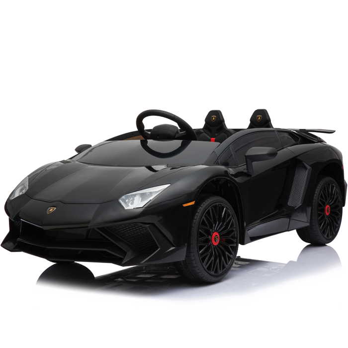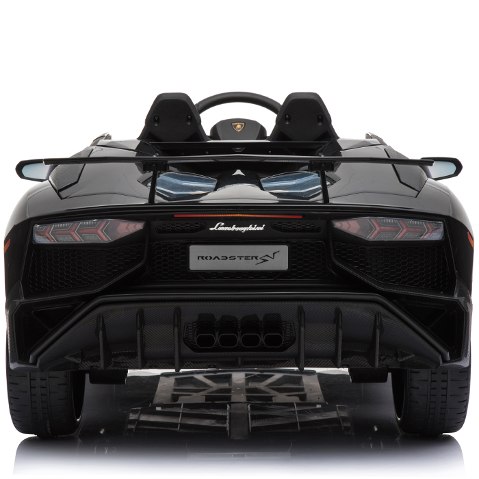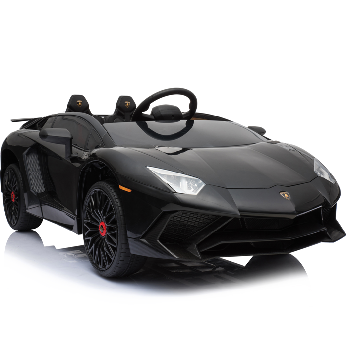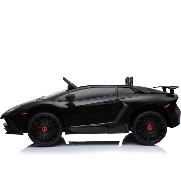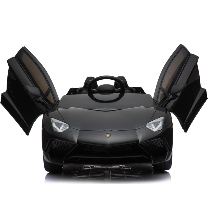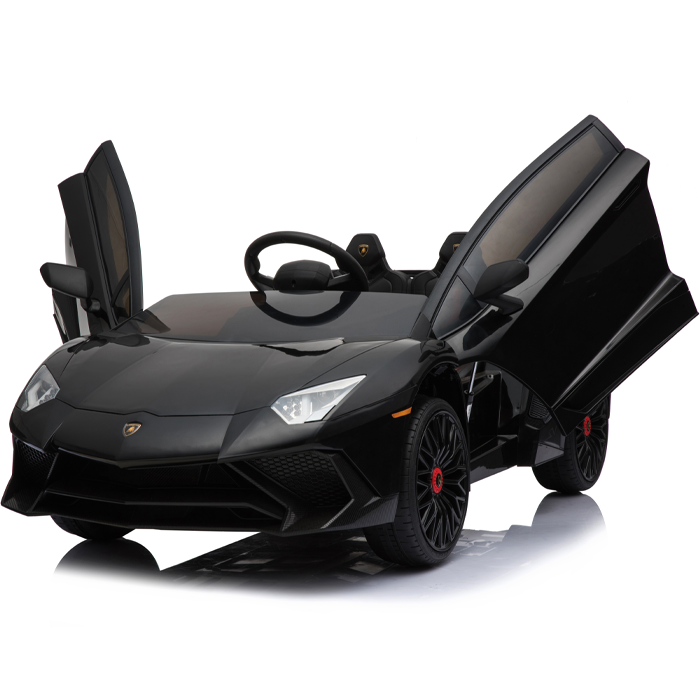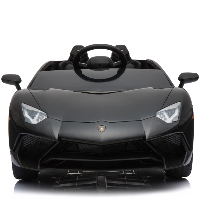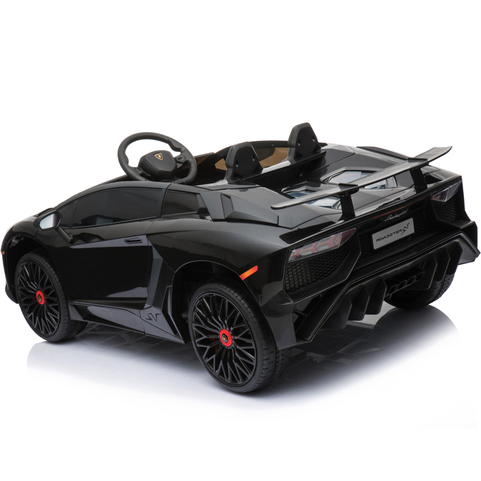 These officially licensed black Lamborghini Aventador 12v ride on cars are the miniature versions of the real Aventador and carry their genuine Lamborghini badges.